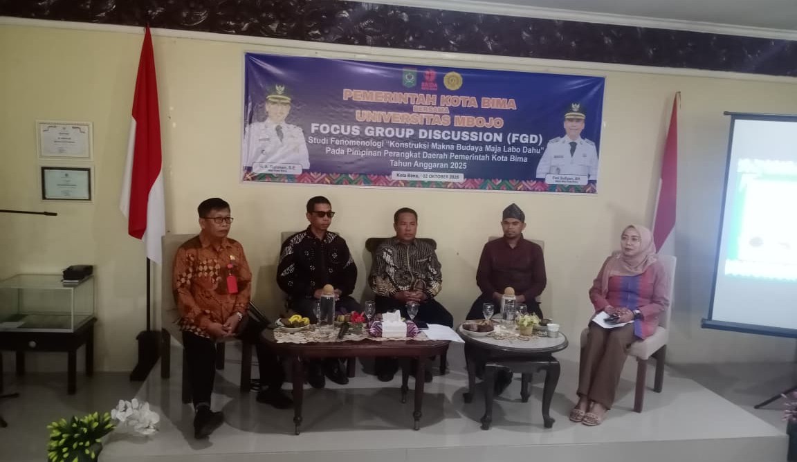 Staf Ahli Bidang Pemerintahan Setda Kota BIma, Drs. H Muhtar, MH, digelar Kamis, 2 Oktober 2025 membuka secara resmi Focus Discussion (FGD) studi Fenomenologi Kontruksi Makna Budaya Maja Labo Dahu pada pimpinan perangkat Daerah Pemerintah Kota Bima di Museum Sampa Raja. Kegiatan tersebut dihadiri sejumlah kepala OPD, para peneliti budaya, serta mahasiswa. Acara itu menjadi bagian Kerjasama antara peneliti Universitas Mbojo dengan BRIDA Kota Bima.
